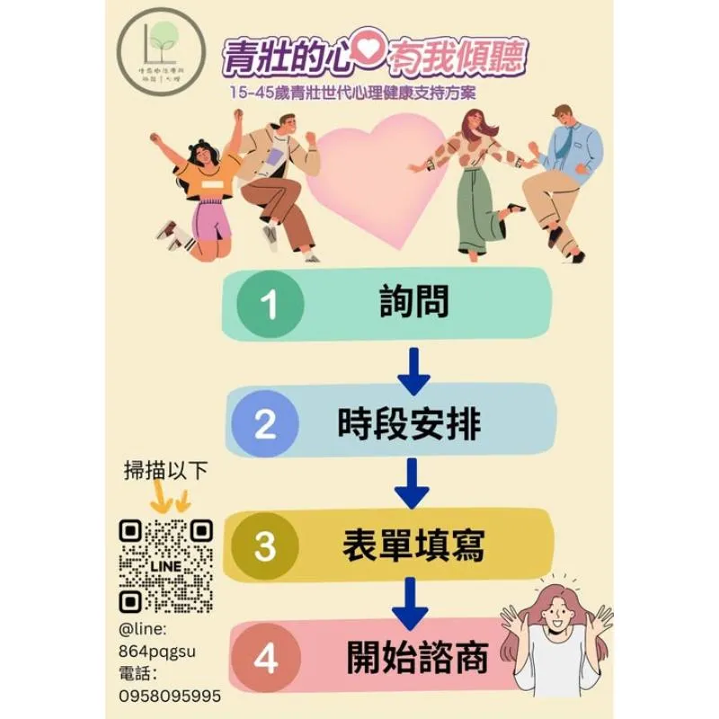 ・平日老師們有講座及其他院所業務,第一次評估請先來電、官方Line預約時段